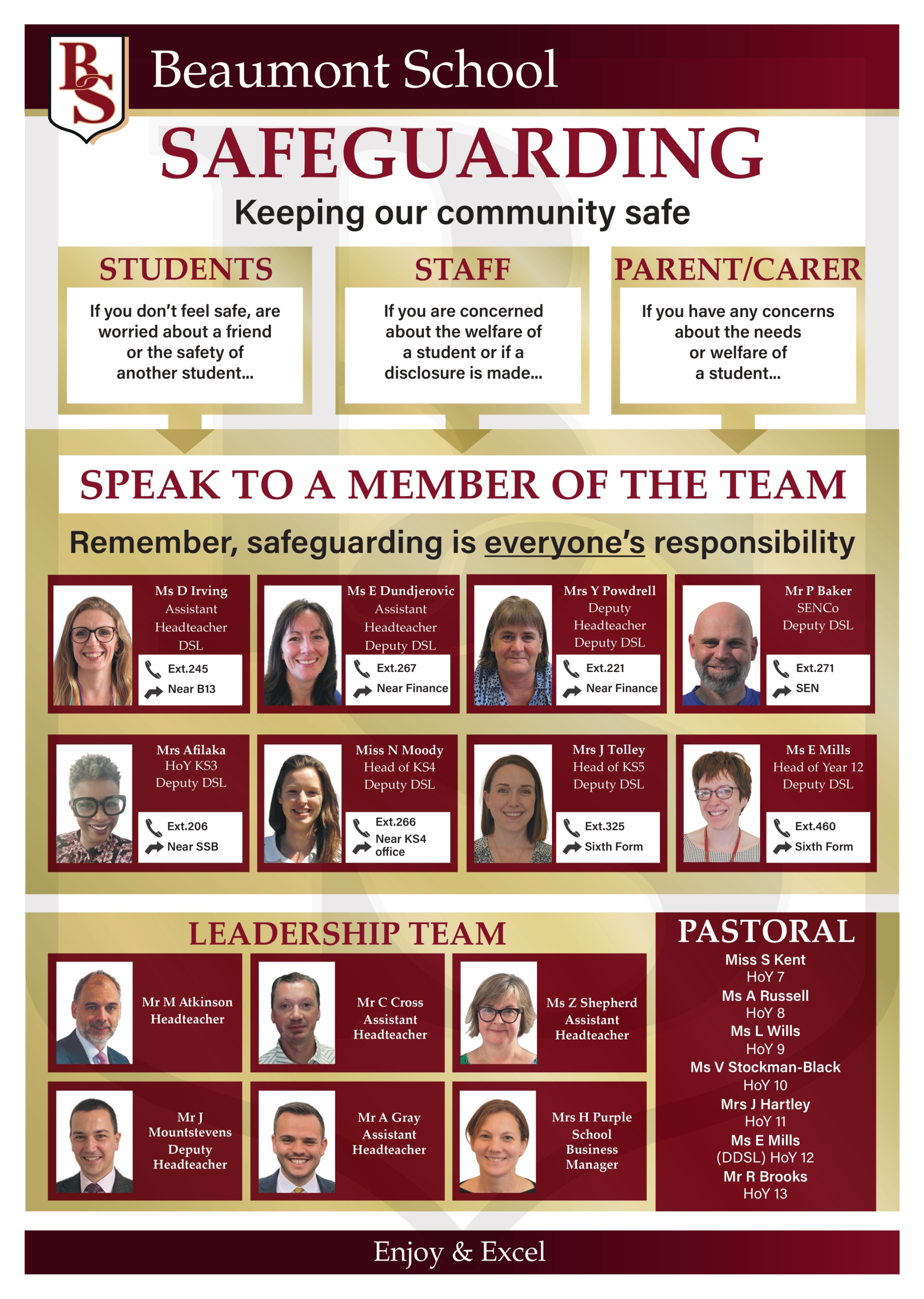 The safety, well-being and enjoyment of all within our community are key to ensuring that all students excel. Safeguarding procedures are integral to the day to day running of the school and all members of staff play an important role in ensuring that every student has the right level of care to meet their individual needs.